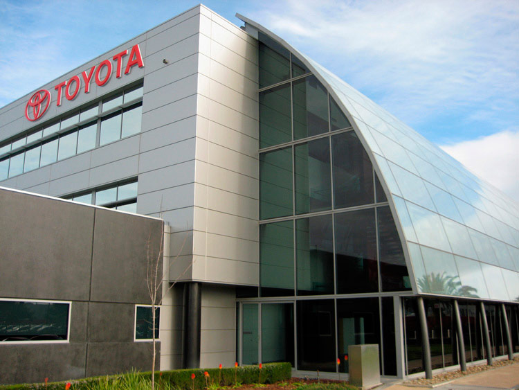 Project: Toyota Dealership MelbourneLocation: South MelbourneFabricator: ClipfitSystem: Custom Curved Curtain Wall - 500 System