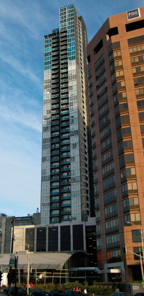 Project: Verve 501 Location: 501 Swanston Street, Melbourne Fabricator: CSF Builder: LU Simon Product: Emporia™ Face Glazed - 150 x 50mm (Single and Double Glazed) - 715 System, Emporia™ Awning Pivot Window - 900 System, Pinnacle™ Sliding/Stacking Door - 735 System, Emporia™ Centre Glazed - 710 System